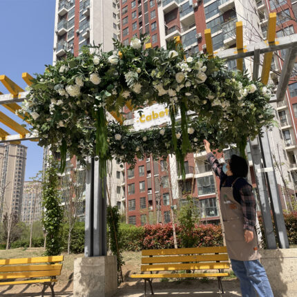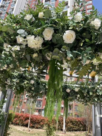 Custom Luxury Artificial Flowers Crafted for Sophisticated Events High Quality Artificial Green Plants White Rose Ceiling Floral Party Stage Flower Decoration