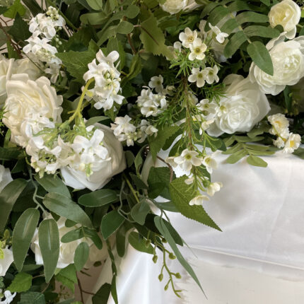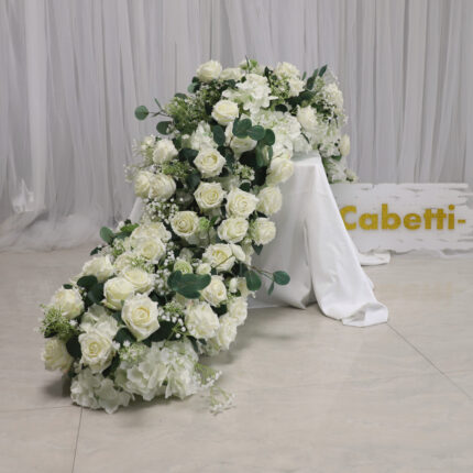 Bespoke Premium Quality Silk Floral Design Wedding Bride And Groom Table Arrangement Artificial White And Green Flower Runner Decoration