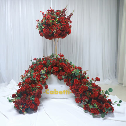 Bespoke Exquisite Wedding & Event Flower Arrangement Flower Runner Wedding Table Runner Silk Flowers Red Flowers Runner Arrangements For Wedding Decoration
