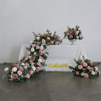 Premium Quality Floral Desig Wedding Drops White Pink Silk Flowers Row Artificial Flower Garland Table Centerpieces Flower Runners For Wedding Arch