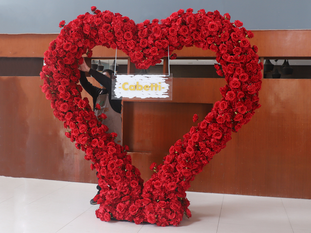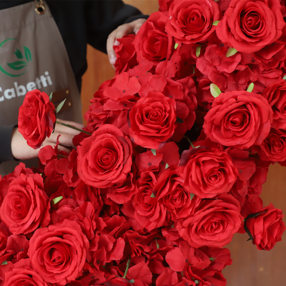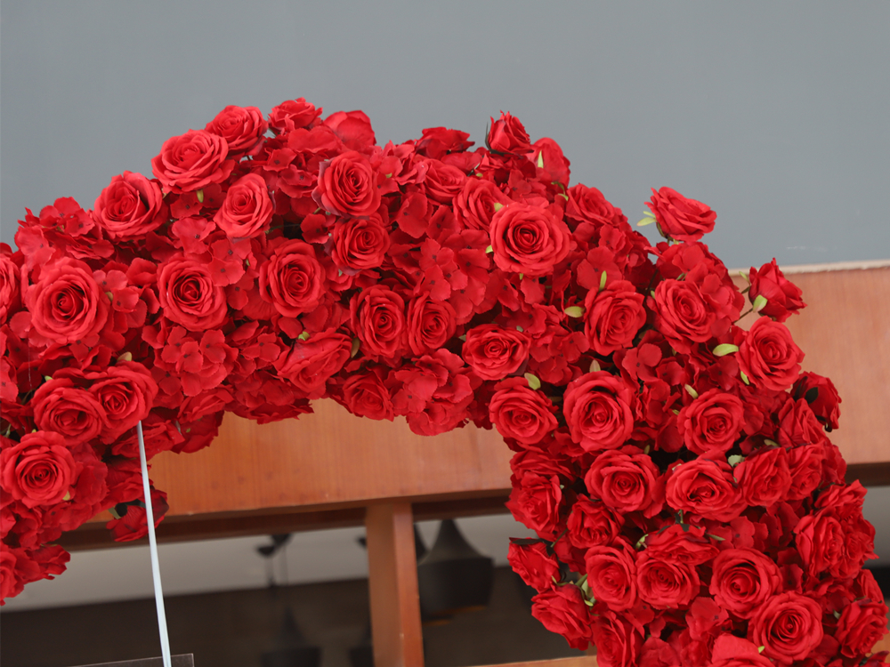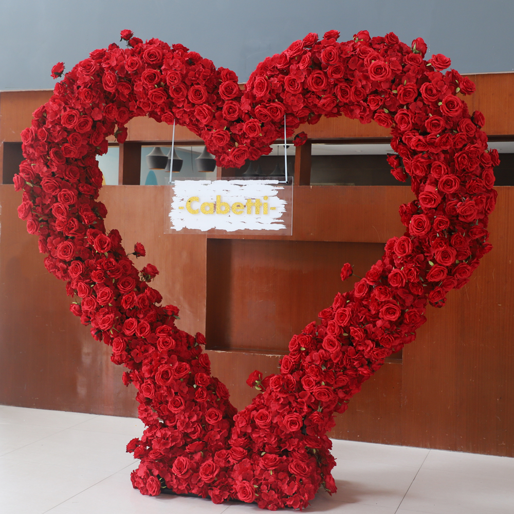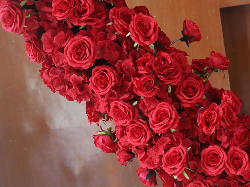 Custom Premium Wedding Decoration Artificial Red Silk Rose Flower Wedding Backdrop Heart Flower Arch for Wedding Decoration