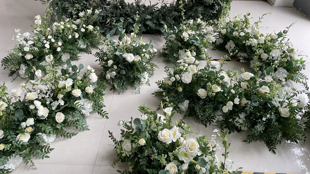 Luxury Artificial Flowers White Green Flower Runner Artificial Silk Green Flower Row For Wedding Event