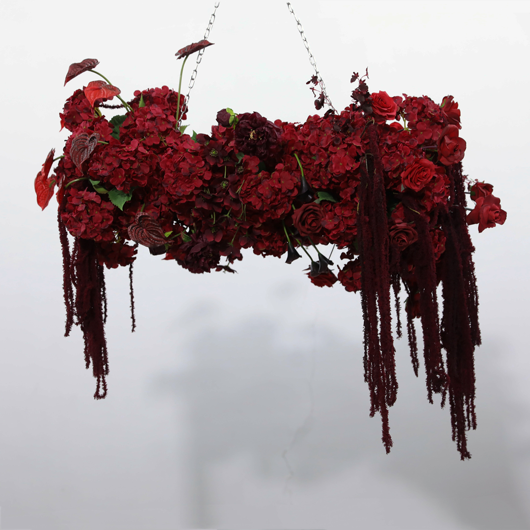 Bespoke Upscale Wedding Flowers Arrangement New Arrival Burgundy Styles Flowers Ceiling Decorations For Wedding