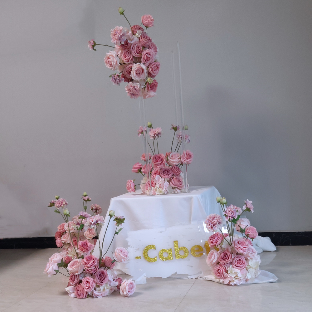 Illuminate your wedding or event with our luxury custom artificial floral décor — including flower rows, long table arrangements, sofa florals, and runner designs.