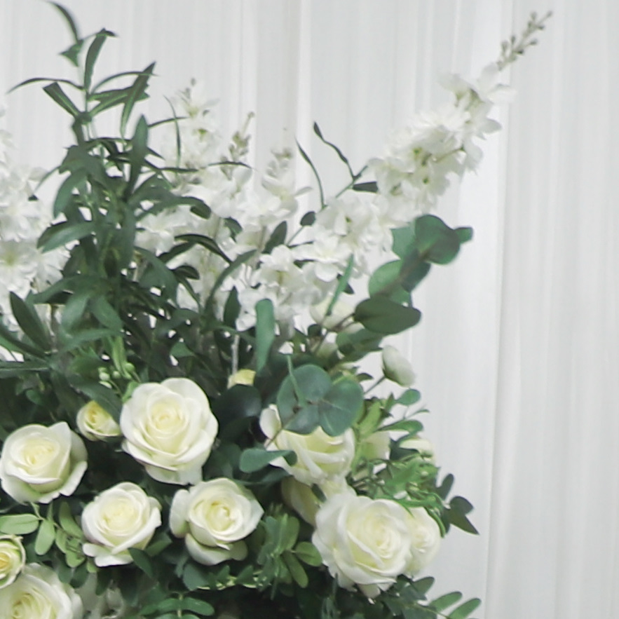 Custom Upscale Silk Floral Design Classic White Rose With Greenery Floral Ball Artificial Flower Ball Center Piece