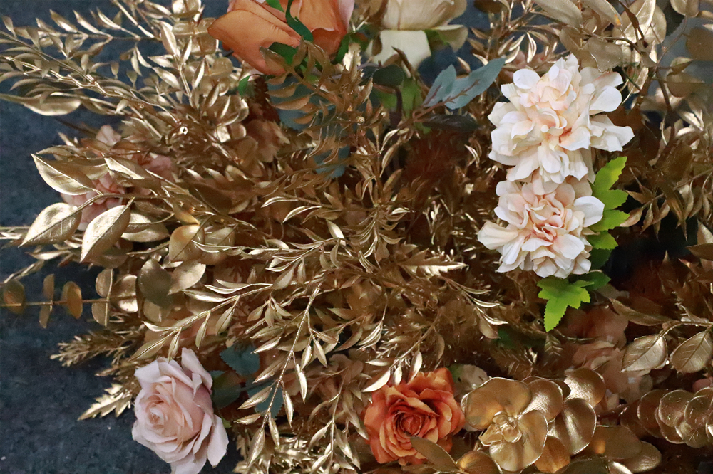 Couture Premium Silk Floral Design Arch Decorations Flowers Length Table Runner gold Artificial Flower Row Arrangement Wedding