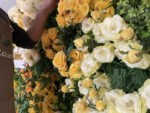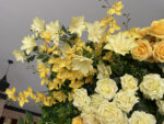 Custom Exquisite Event Decoration Yellow Cloth Fabric Roll Up Wedding Decoration Rose Flowers Wall Backdrop Artificial Wall Panels With Green Leaves