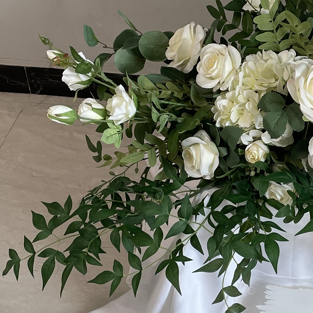 Custom Exquisite Silk Flowers Wedding Artificial Green Plant White Rose Green Leaves Flower Ball Set For Wedding Table Centerpiece Decoration