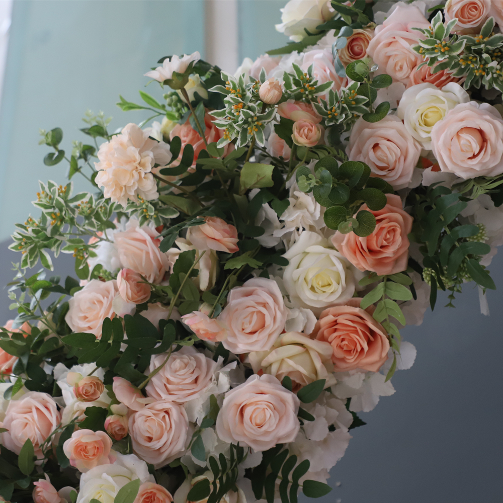 Custom Premium Quality Florals Pink And Champagne Mixed Color Silk Rose Flower Arch For Wedding Ceremony Sweet Birthday Party Floral Decorative