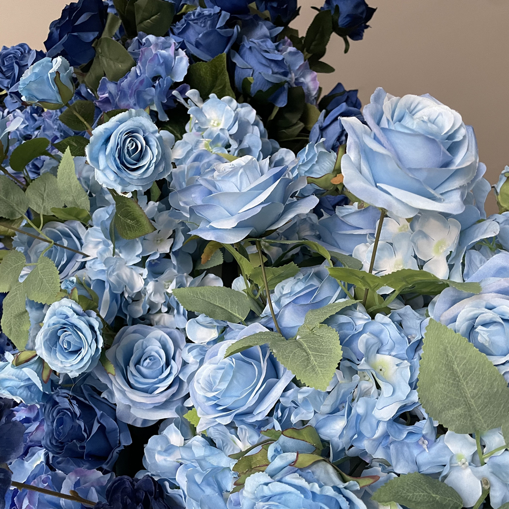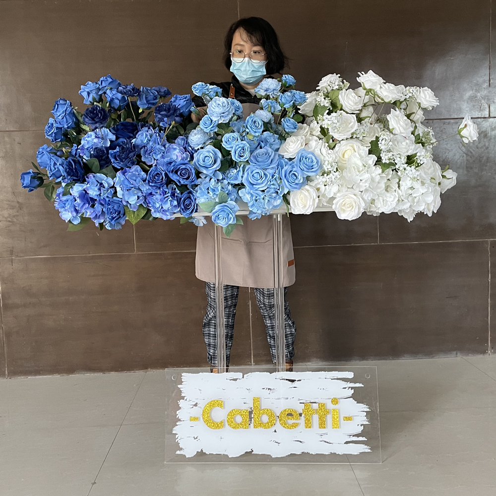 Custom Upscale Silk Flowers Arrangement Stage Garland Flower Decoration Luxury White And Blue Hydrangea Flower Row