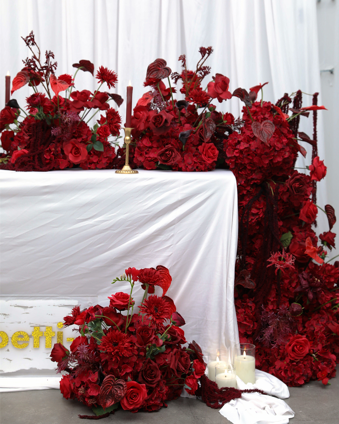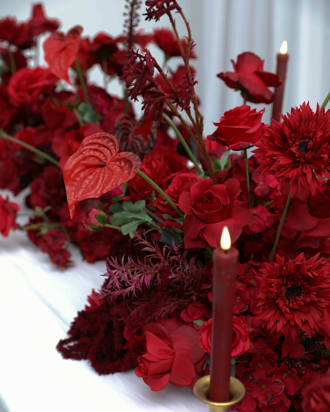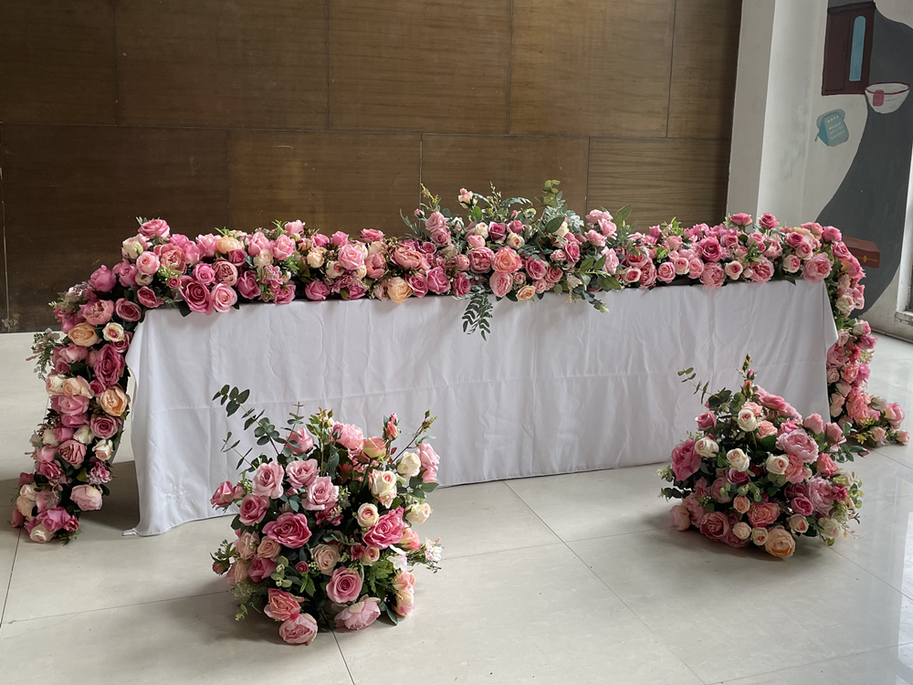 Illuminate your wedding or event with our luxury custom artificial floral décor — including flower rows, long table arrangements, sofa florals, and runner designs.
