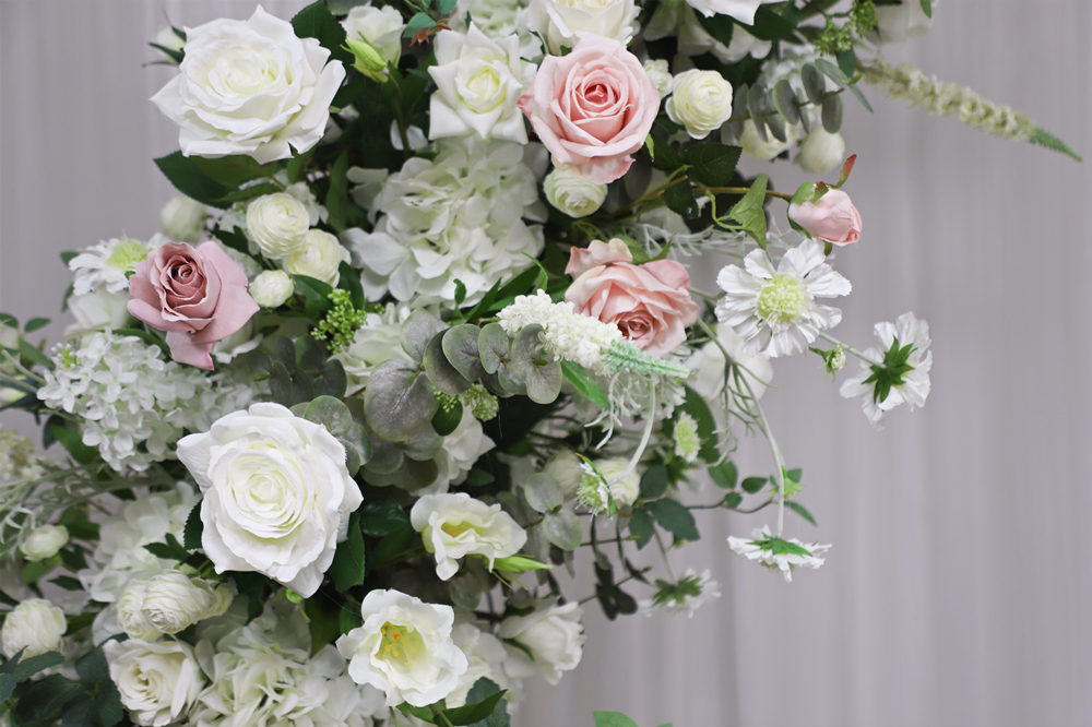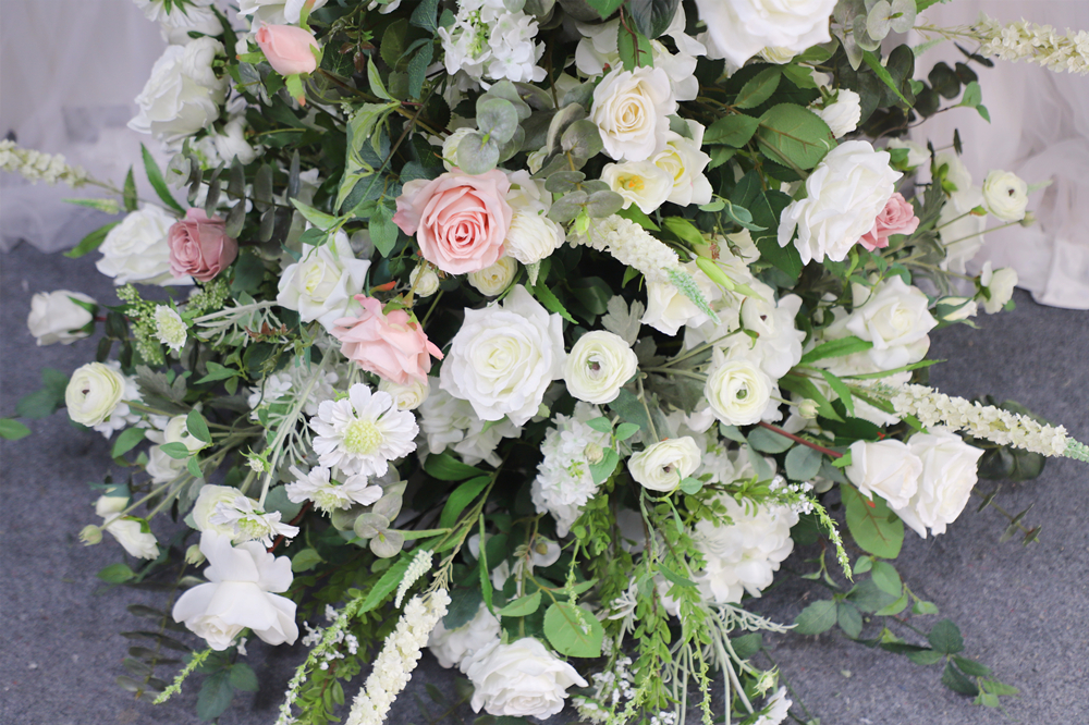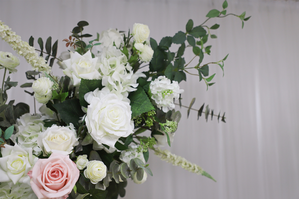 Upscale Artificial Floral Styling Green Leaf White Rose Artificial Horn Arch Flower Stand Handmade Floral Wedding Party Event Christmas Backdrop Decoration