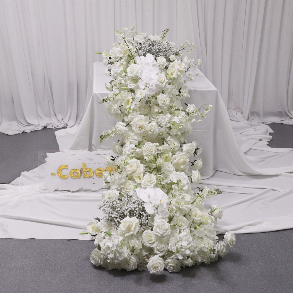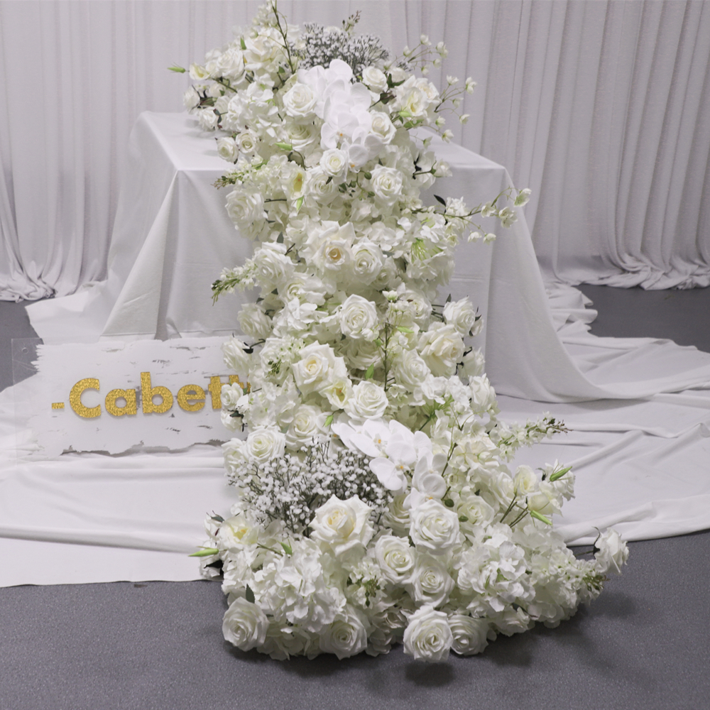 Custom Premium Wedding Florals Wedding Props White Flowers Runners Flower Rows Artificial Flowers Table Runner For Wedding Decoration