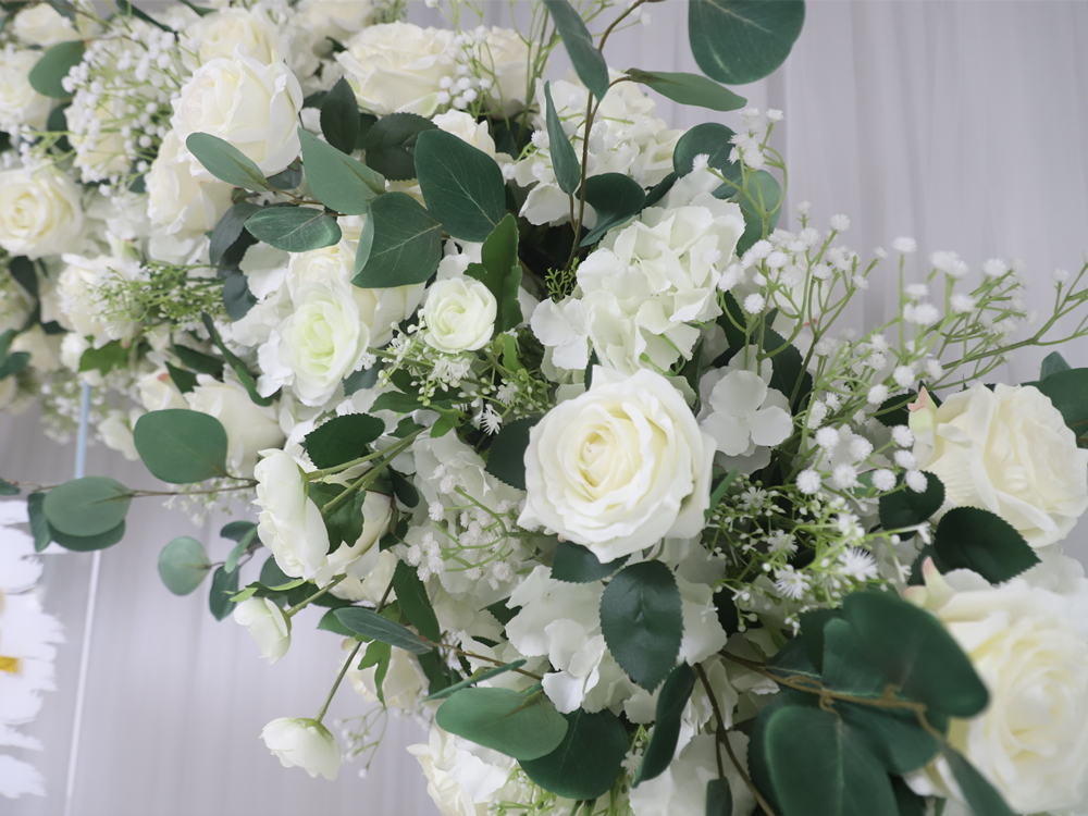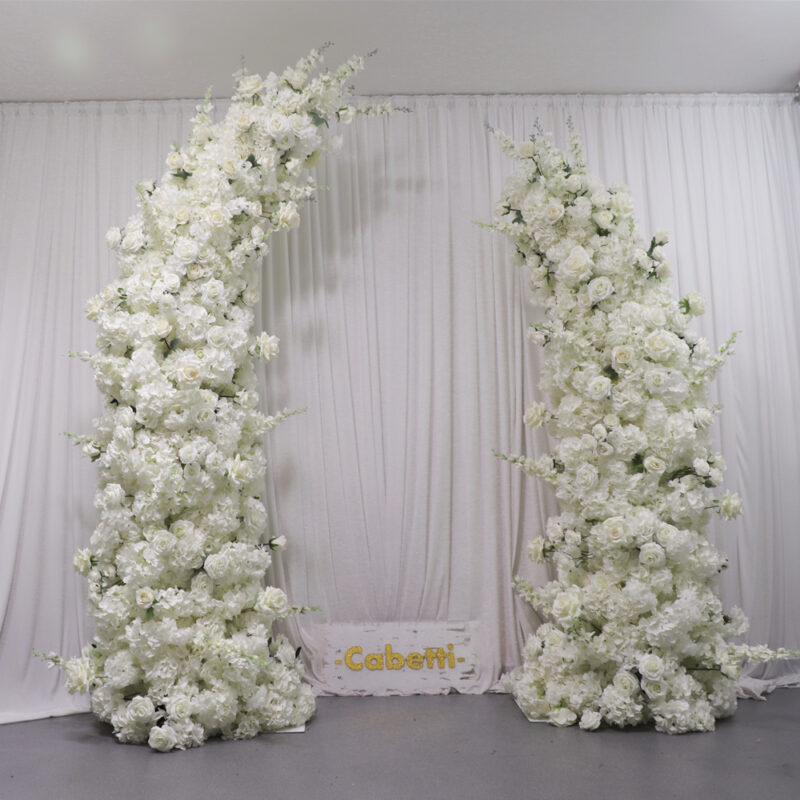 Couture Finest Floral Styling 8ft High White Silk Flower Green Leaves Artificial Flower Arch Frame for Wedding Decoration
