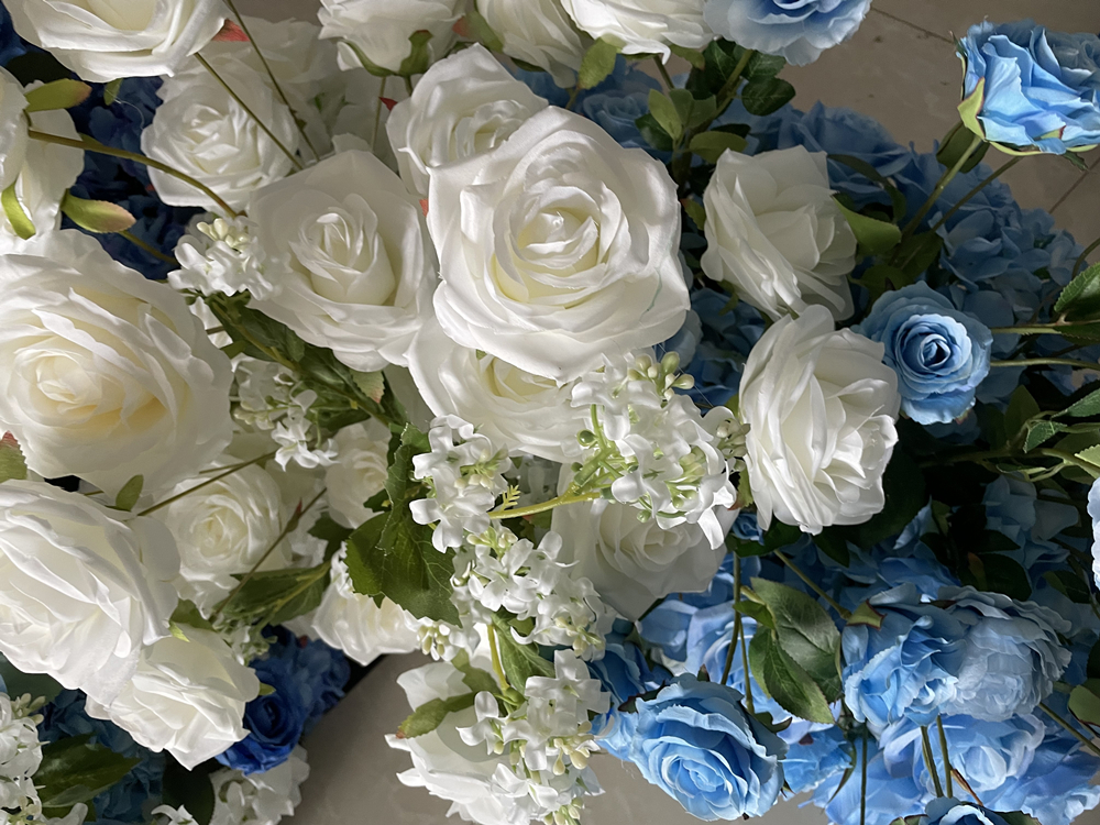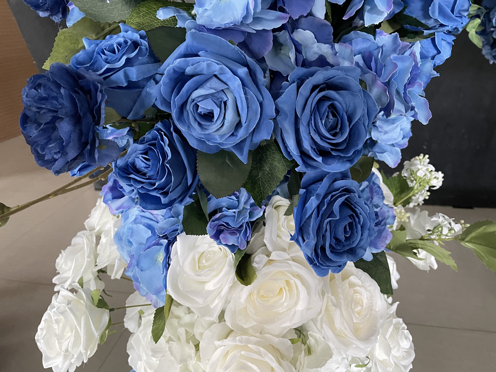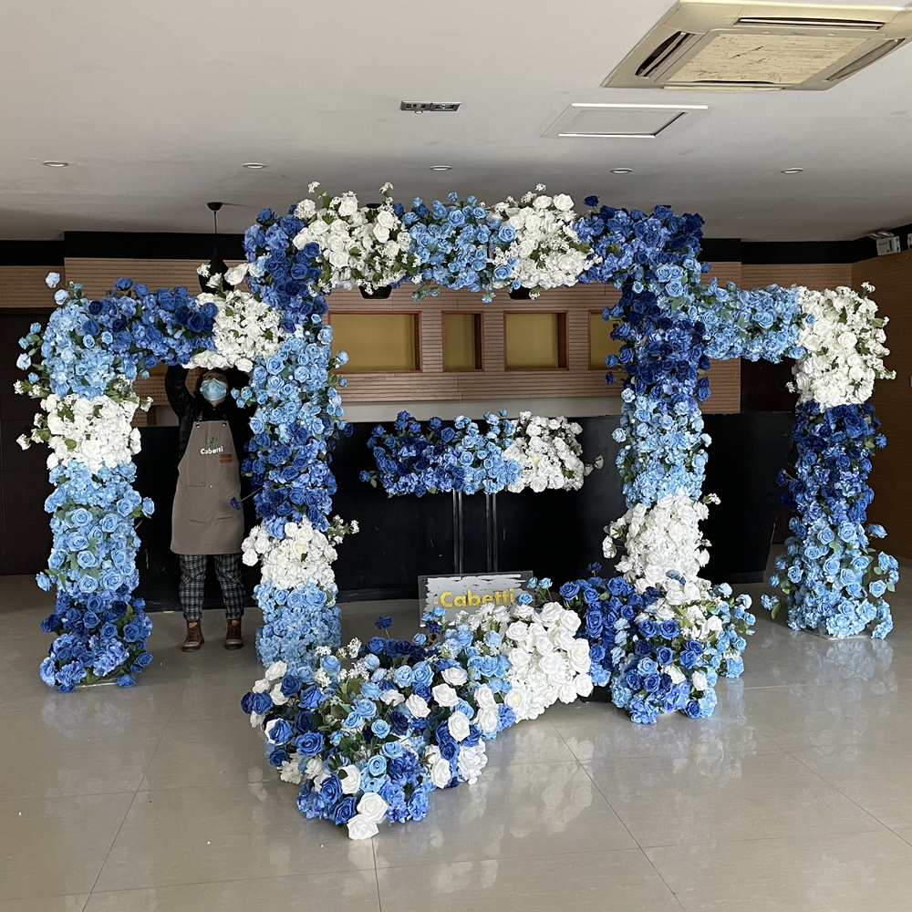 Couture Upscale Silk Flowers Arrangement Slik Flower Arch Backdrop Frame Shaped Wedding Event Artificial Blue Rose Arch