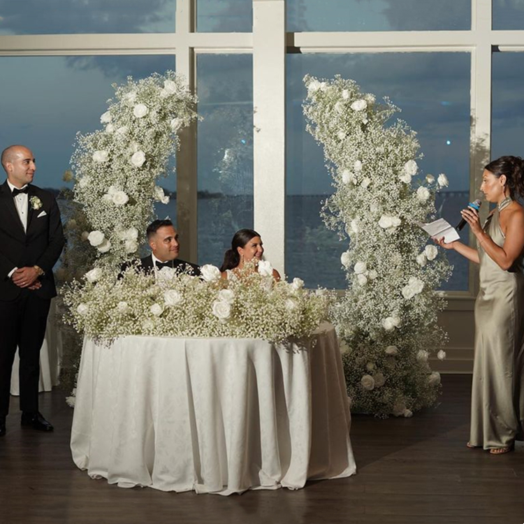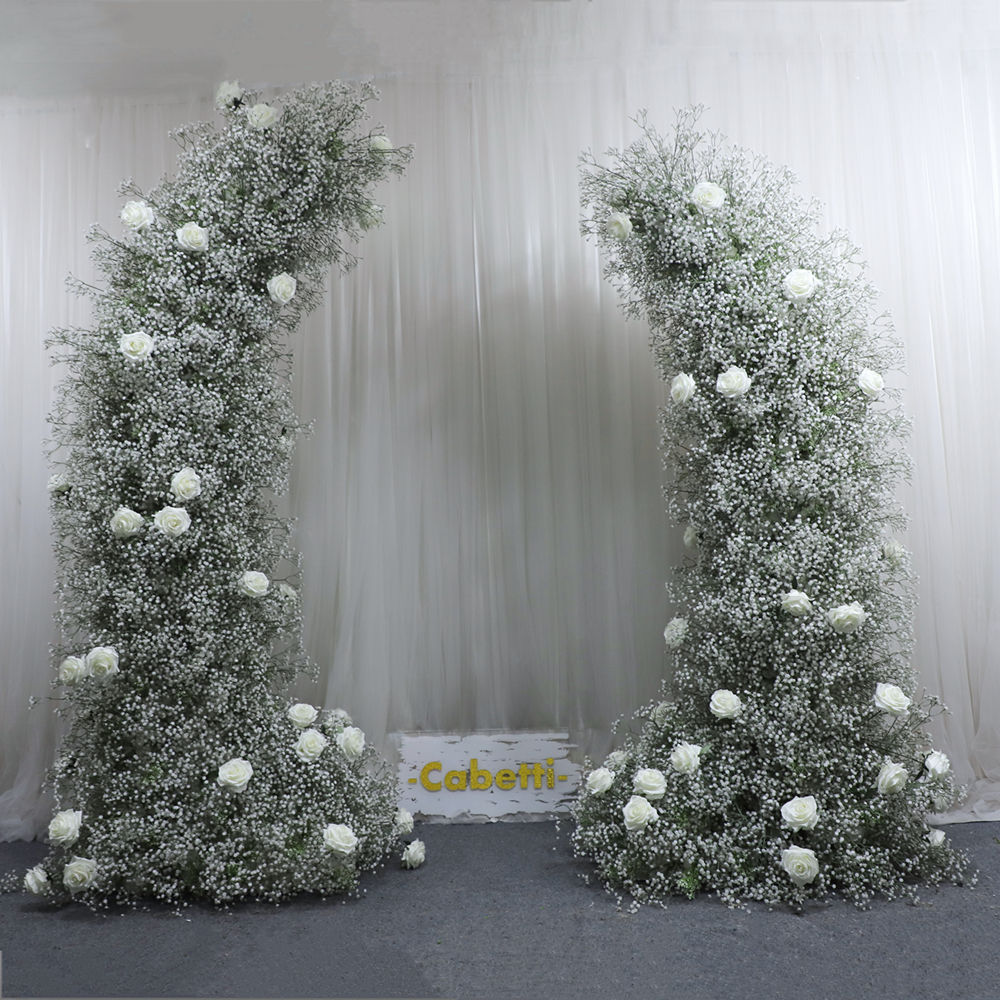Custom Luxury Artificial Floral Styling Wedding Decoration Baby Breath Arch Flower Background Artificial Rose Flower Stage Events Arch Wedding Background