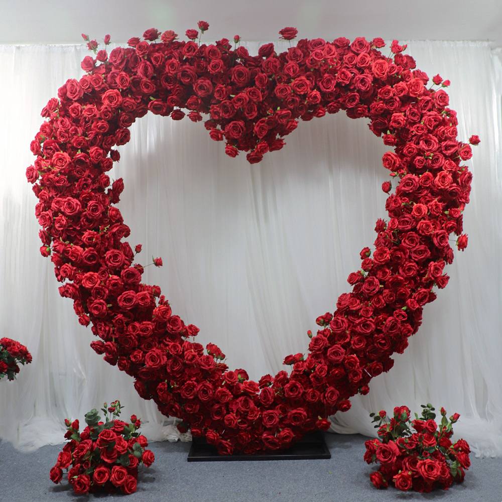 Custom Upscale Florals Heart Backdrop Arch Wedding Floral Arch Backdrop Frame Red Rose Flower Arch for Wedding Party Decoration