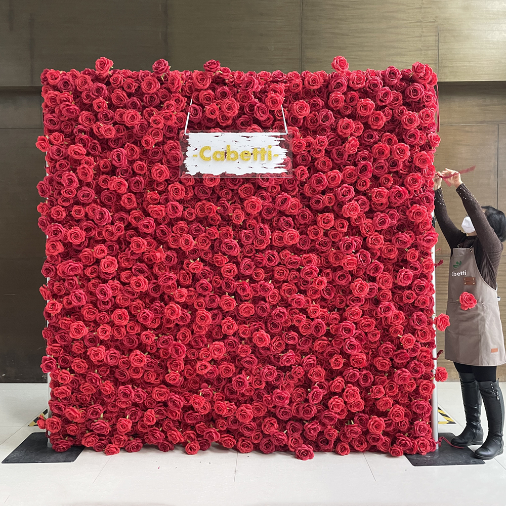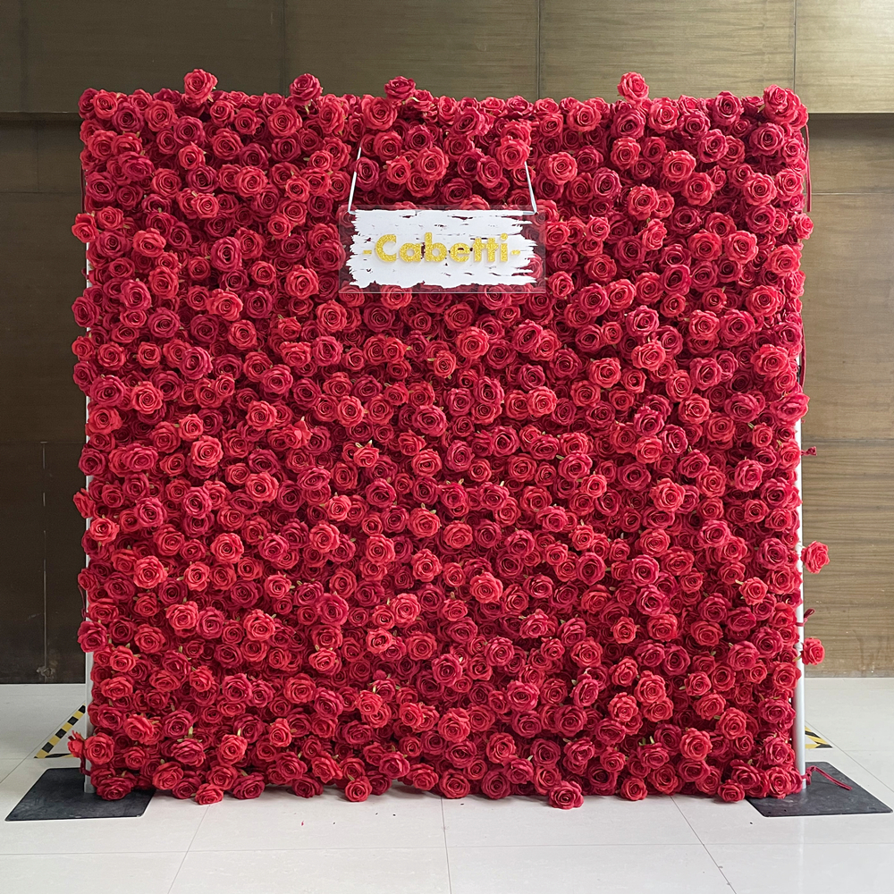 Custom Premium Silk Florals with Designer Wall Wedding Flower Backdrop Red Rose Flower Wall for Event Decoration