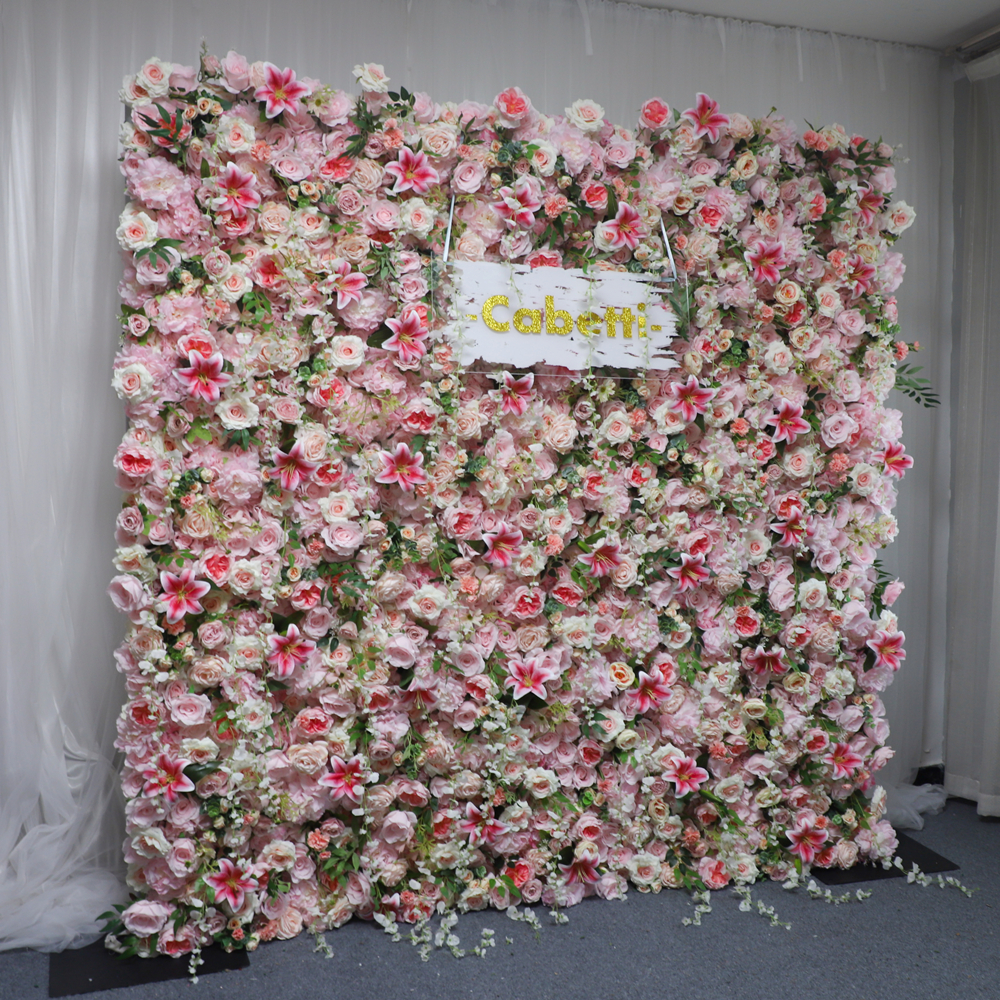 Custom High-End Wedding Decoration Pink Customized Wall Wedding Decor Backdrop Decorative Flower Rolled up Artificial Flower Wall Backdrop