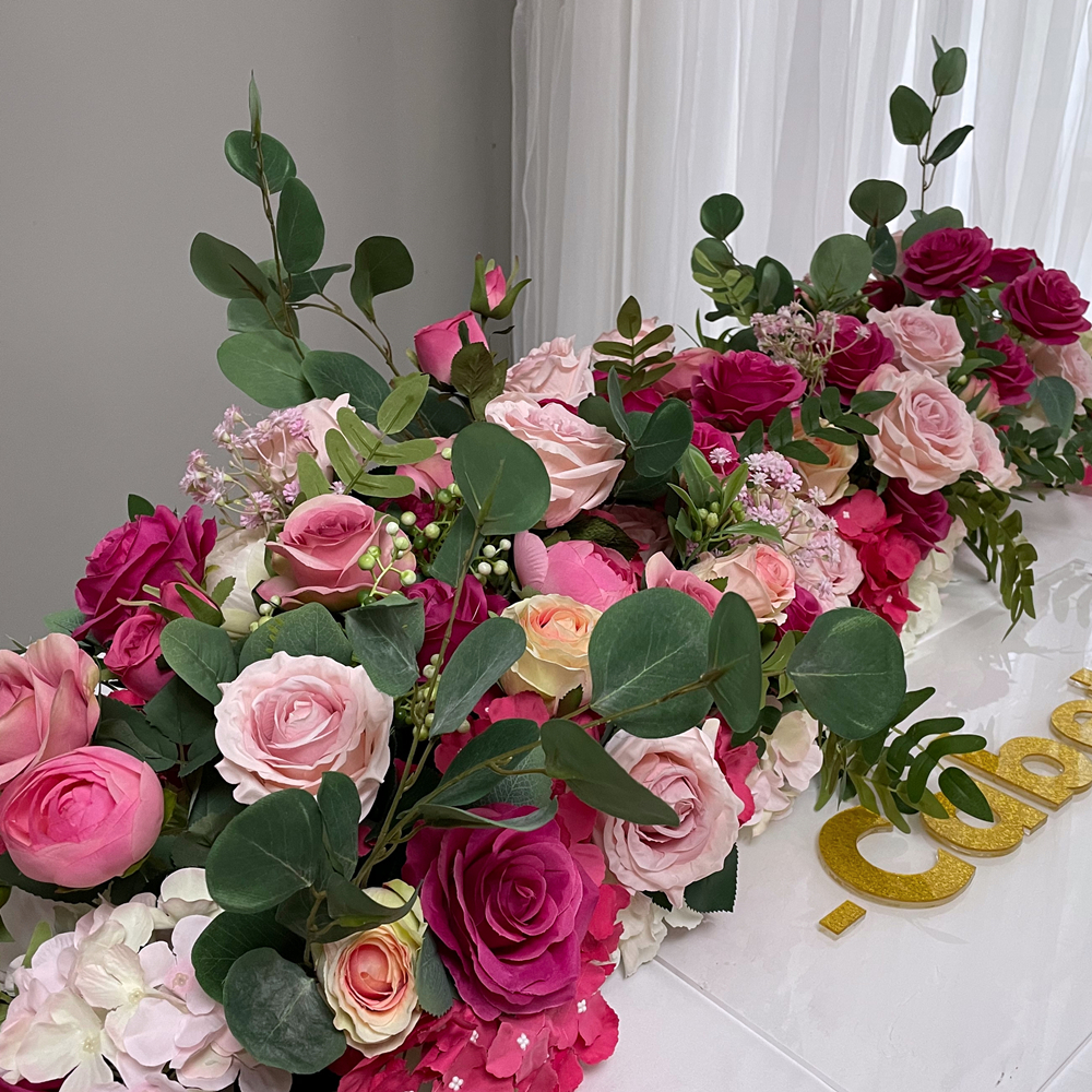 Illuminate your wedding or event with our luxury custom artificial floral décor — including flower rows, long table arrangements, sofa florals, and runner designs.