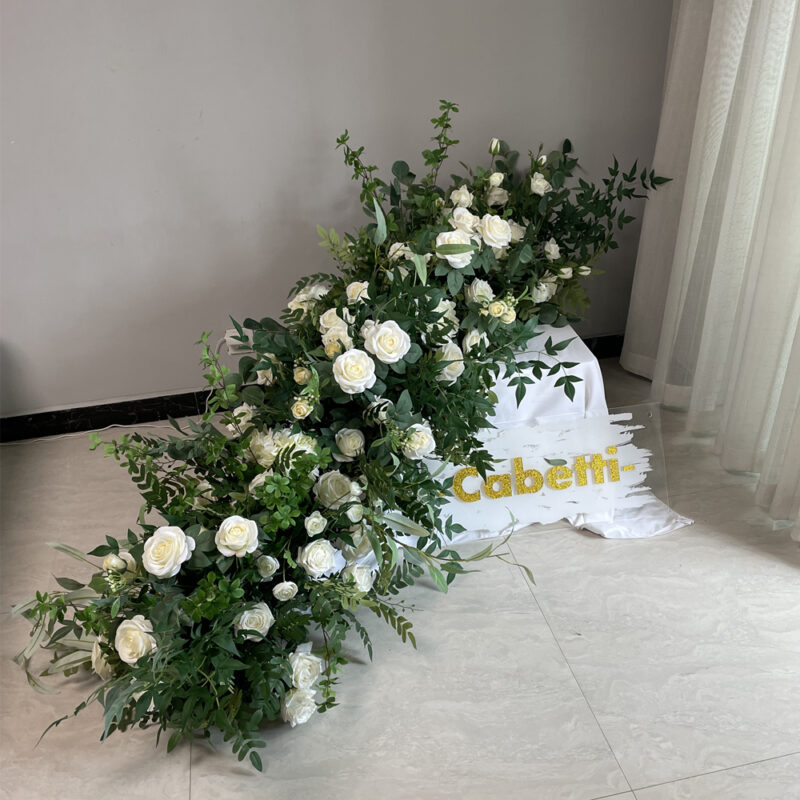 Bespoke Premium Quality Silk Floral Design Wedding Bride And Groom Table Arrangement Artificial White And Green Flower Runner Decoration