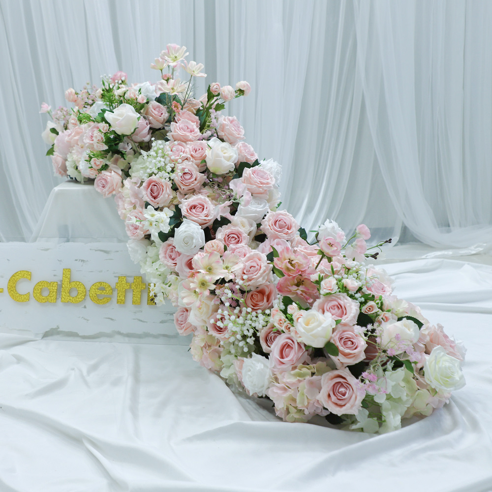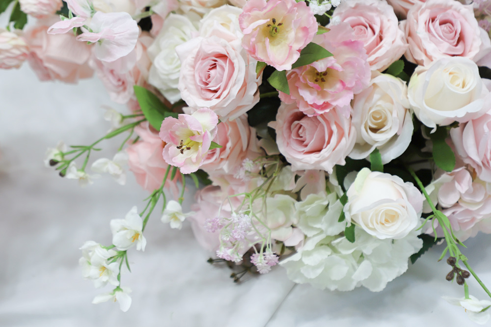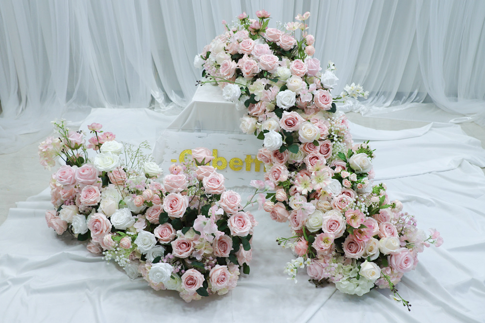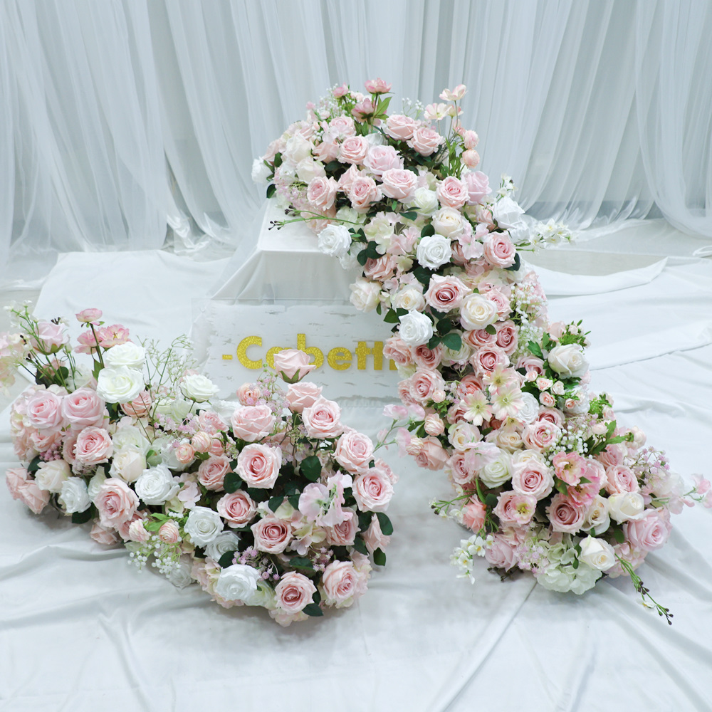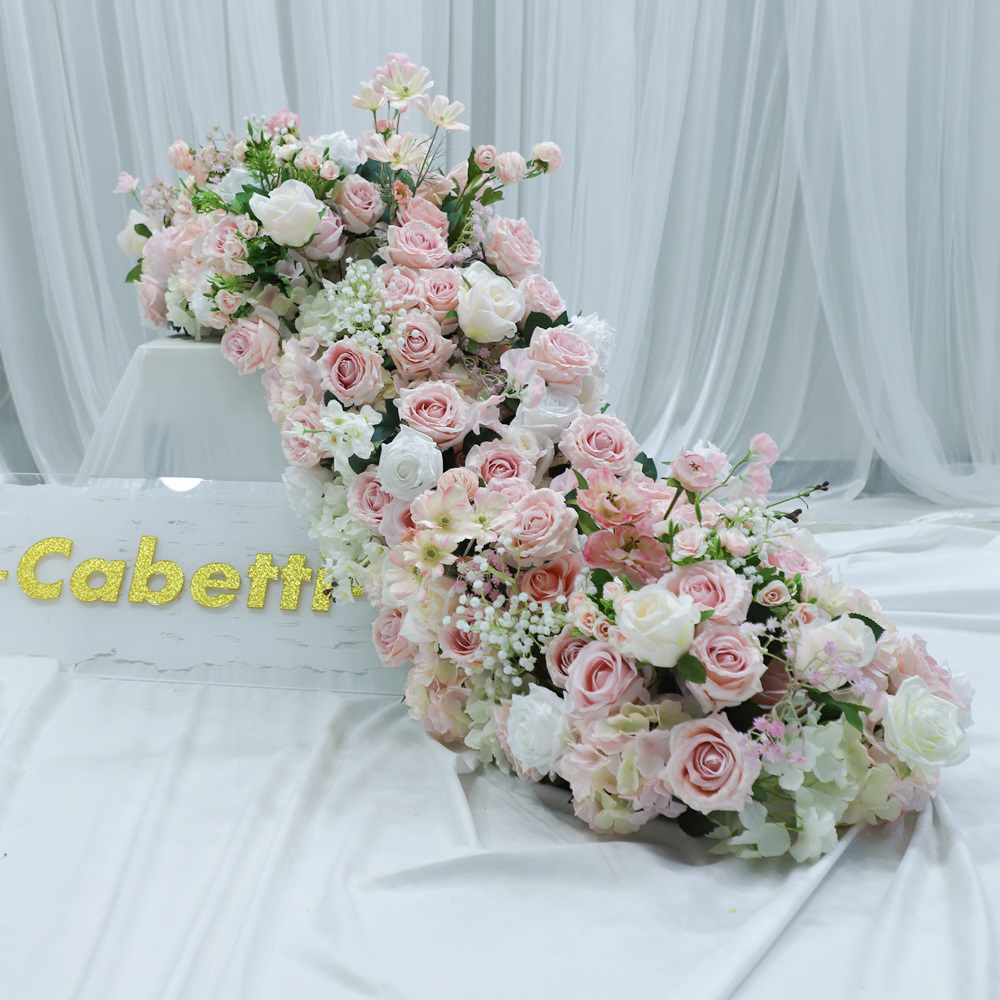 Custom Premium Artificial Floral Styling Artificial Flower Wedding Decoration Flower Row Pink White Green Flower Runner