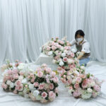 Illuminate your wedding or event with our luxury custom artificial floral décor — including flower rows, long table arrangements, sofa florals, and runner designs.