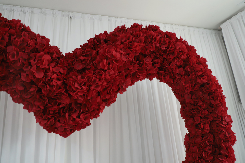 New Personalized Red White Heart Shaped Flower Arch Wedding Backdrop for Wedding Decoration