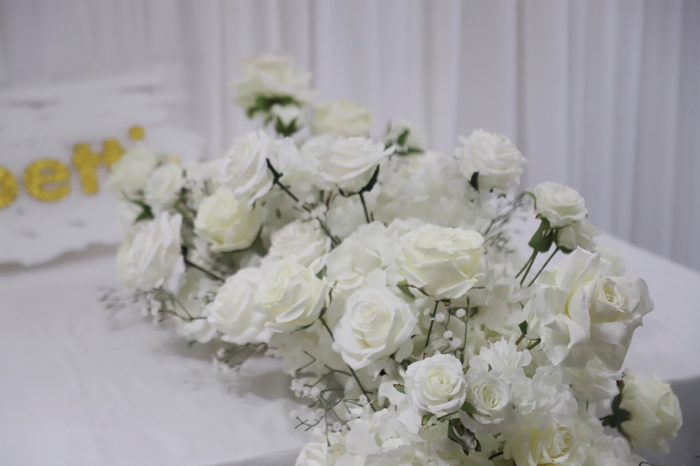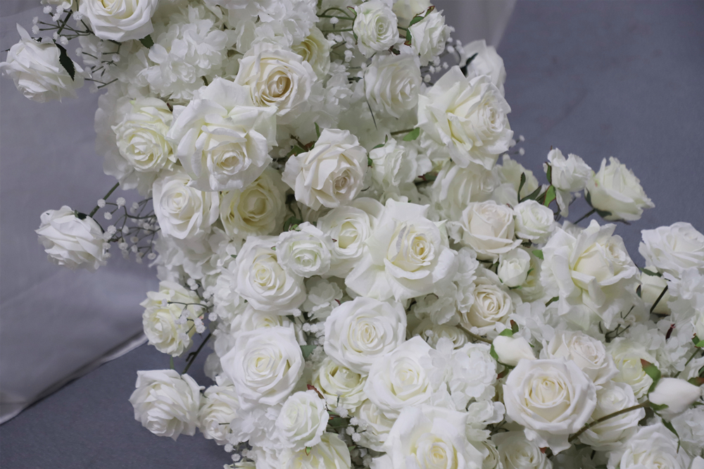 Couture Luxury Wedding & Event Florals Wedding Ivory Backdrop Arch Flowers Row Silk Rose White Table Flower Runner for Aisle Decoration