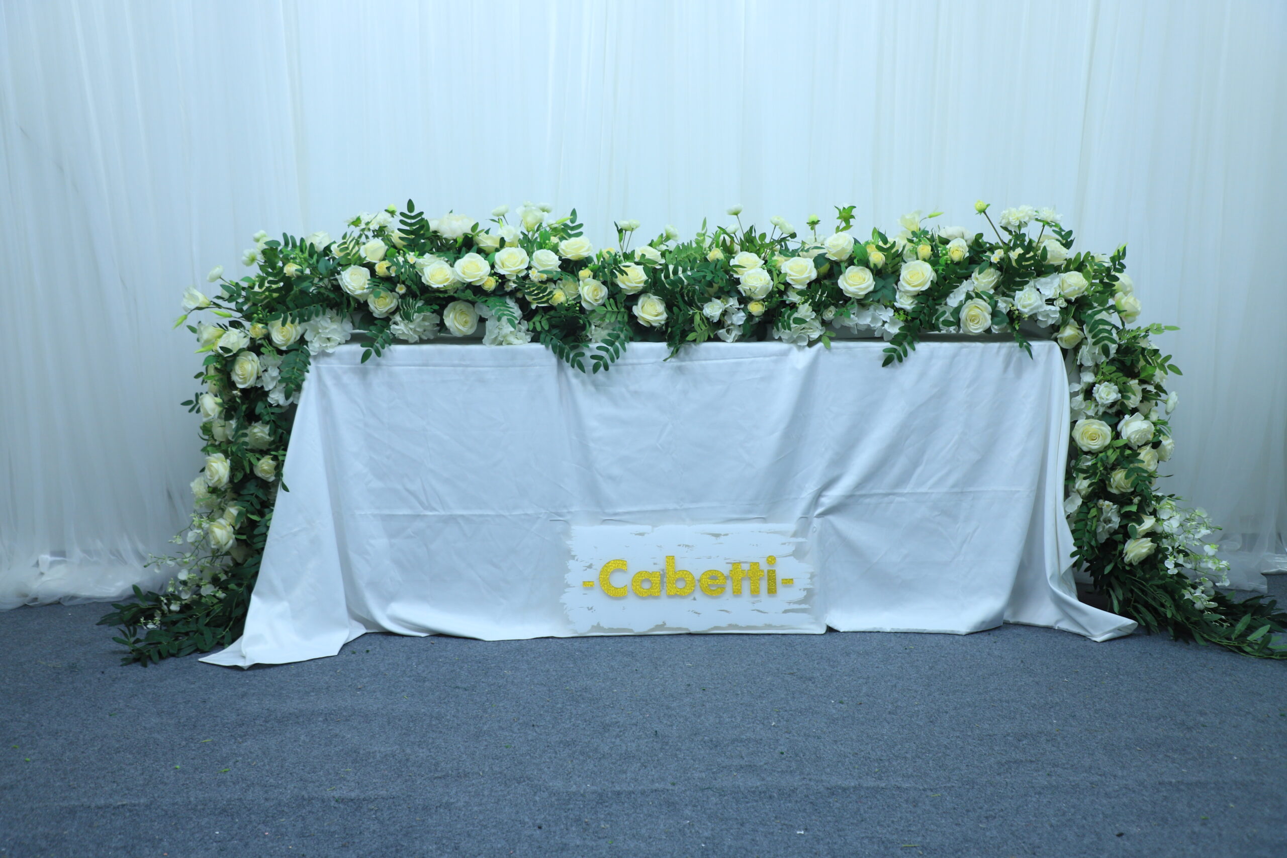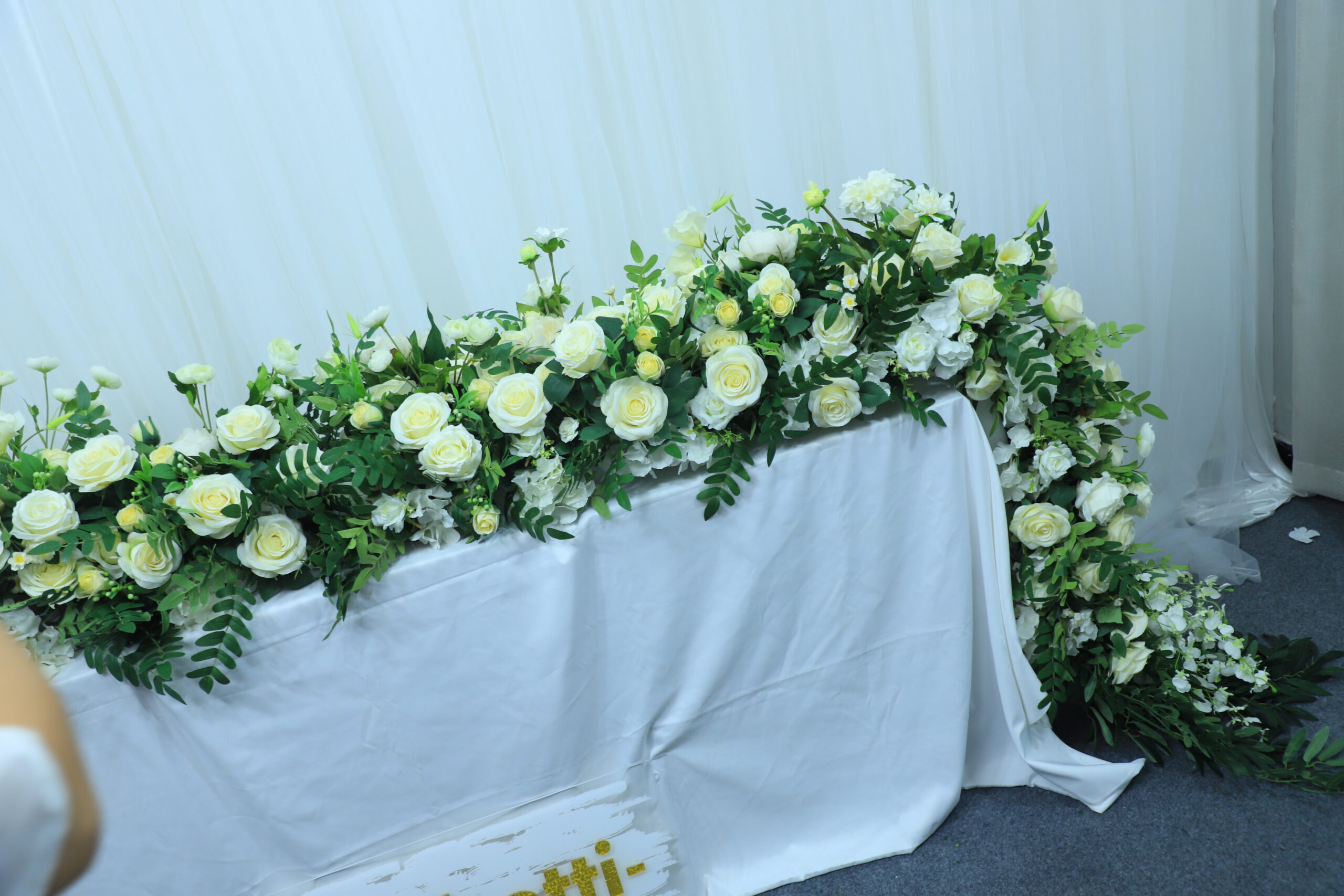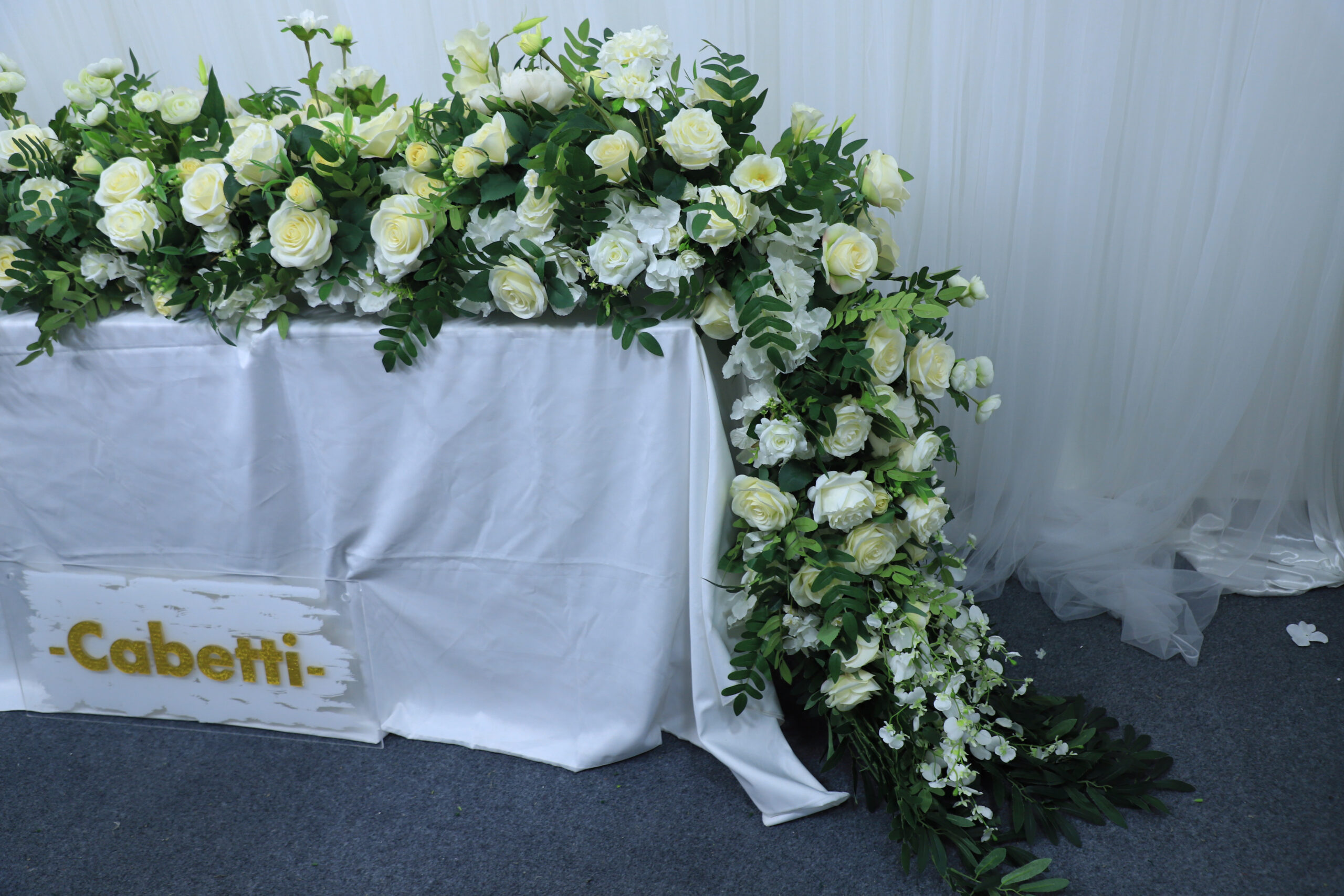 Illuminate your wedding or event with our luxury custom artificial floral décor — including flower rows, long table arrangements, sofa florals, and runner designs.