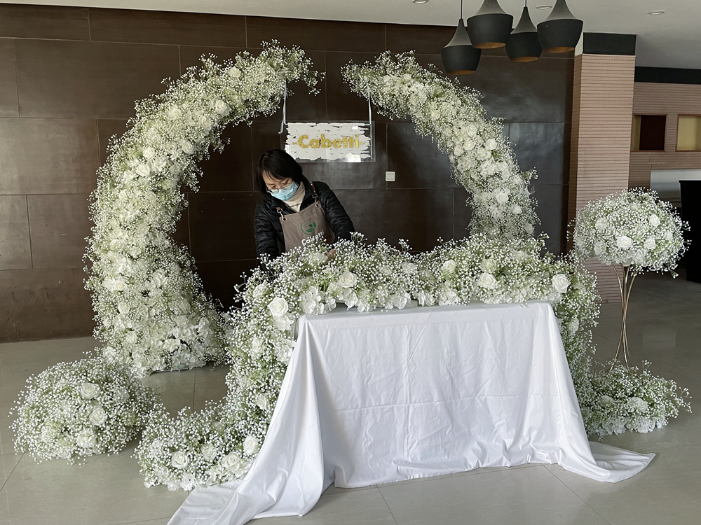 White Baby Breath Rose Silk Backdrop Floral Wedding Arch Flowers Flower Ball Flower Row For Events Party Decorations