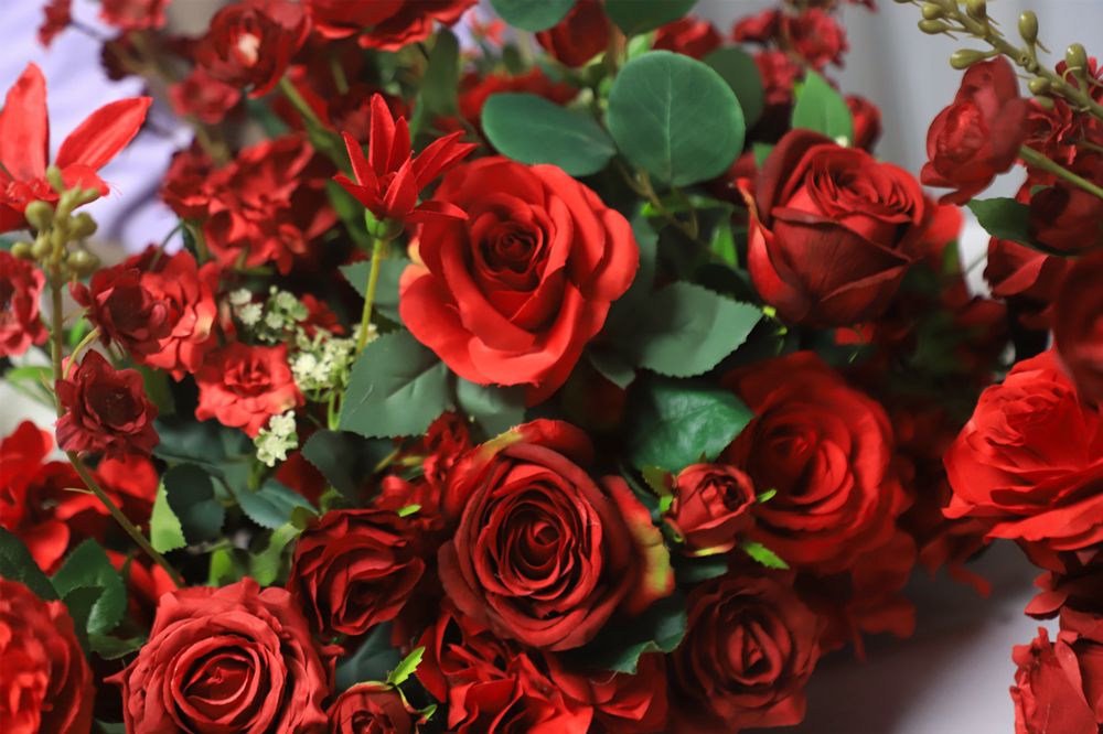 Couture Upscale Florals Red Flower Runner Artificial Flower Runners Artificial Rose Flower Runner for Wedding Decor