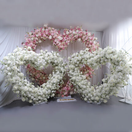 Custom Premium Florals Artificial Pink Flower Arch Heart Shaped Flower Arch Backdrop Wedding Silk Flower Arch Decoration