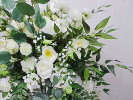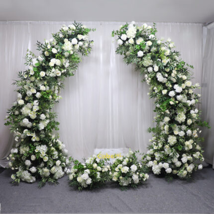 Premium Quality Silk Flowers Arrangement Green Plant White Rose Horn Arch Floral Wedding Stage Background Decoration Rose Backdrop Flower Arch