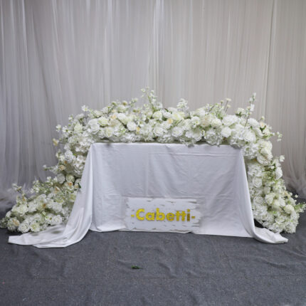 Sophisticated Silk Floral Design Artificial Silk Rose Row White Flower Runner for Wedding Table Events Aisle Centerpieces Decoration Flowers