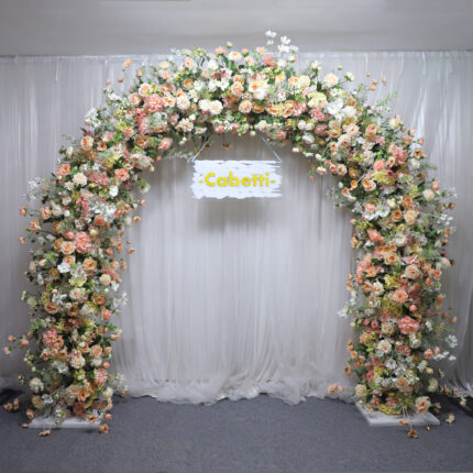 Upscale Wedding Decoration Champagne Peach Pink Artificial Silk Wedding Arch Flower Runner & Floral Arch For Event Propose Decoration Wedding Arch