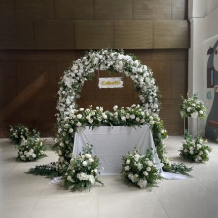 White Green Flower Arch Arrangement,Wedding Decoration Supplies Fake Greenery Centerpiece White Roses Artificial Flowers Arch And Flower Ball